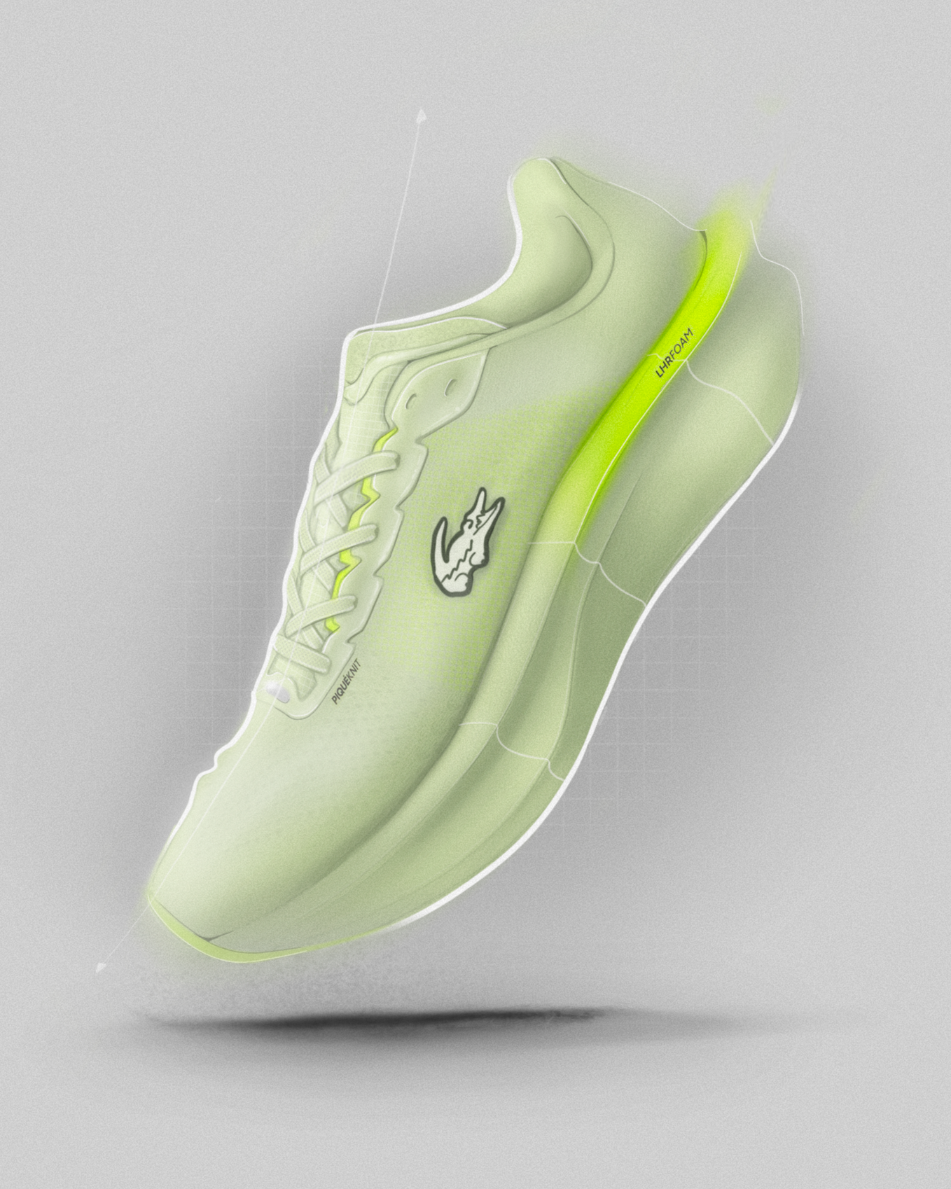 Internal midfoot cage for stability, piquéknit upper inspired by the Lacoste L.12.12 polo, and a lightweight Pebax-blended midsole tuned for responsive energy return
